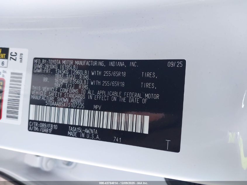2026 TOYOTA HIGHLANDER 2026 року Бензин, 2.4, Повний привід, vin - 5TDAAAB5XTS107235 з США