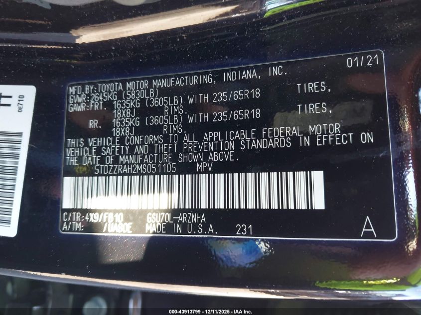 2021 TOYOTA HIGHLANDER HYBRID XLE
