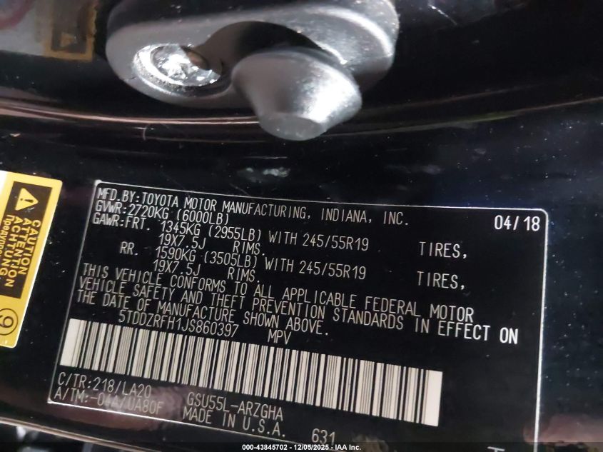 2018 TOYOTA HIGHLANDER 2018 року Бензин, 3.5, Повний привід, vin - 5TDDZRFH1JS860397 з США