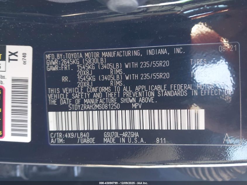 2021 TOYOTA HIGHLANDER HYBRID XLE