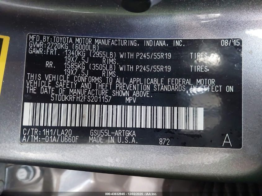 2015 TOYOTA HIGHLANDER 2015 року Бензин, 3.5, Повний привід, vin - 5TDDKRFH2FS201157 з США