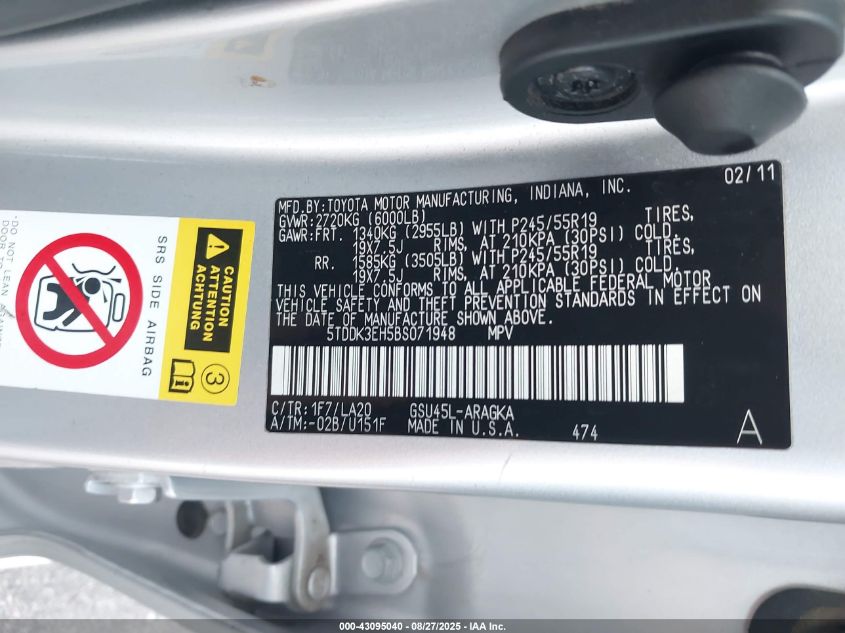 2011 TOYOTA HIGHLANDER 2011 року Бензин, 3.5, Повний привід, vin - 5TDDK3EH5BS071948 з США