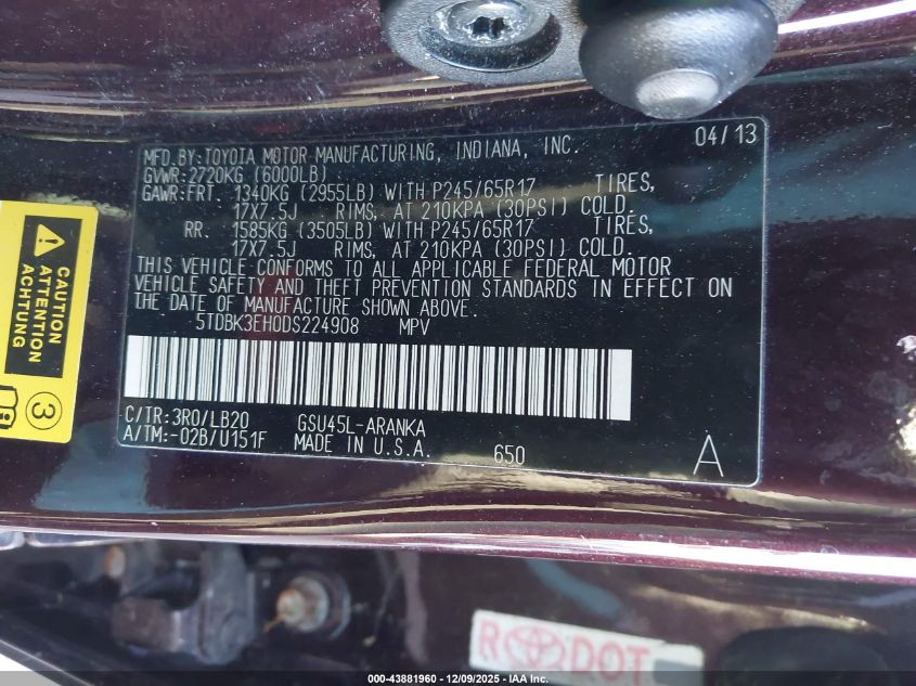 2013 TOYOTA HIGHLANDER 2013 року Бензин, 3.5, Повний привід, vin - 5TDBK3EH0DS224908 з США