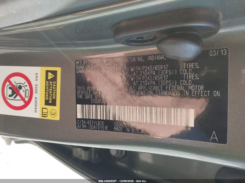 2013 TOYOTA HIGHLANDER 2013 року Бензин, 3.5, Передній привід, vin - 5TDZK3EH5DS114788 з США