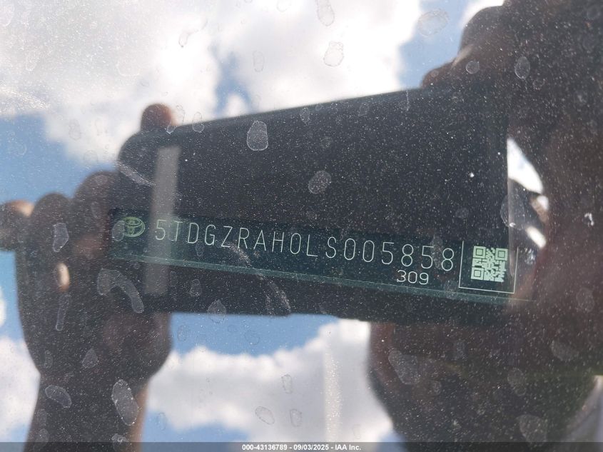 Колір СинійЦиліндри 6Привід Передній привідVIN 5TDGZRAH0LS005858Стан СтаціонарноУшкодження Ліва сторонаДата аукціону 2025-12-09 AutoRIA