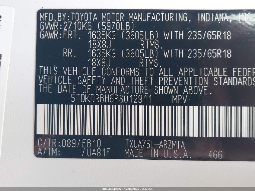Колір БілийЦиліндри 4Привід Повний привідVIN 5TDKDRBH6PS012911Стан Заводиться та їде (перевірено)Ушкодження Передня і задня AutoRIA