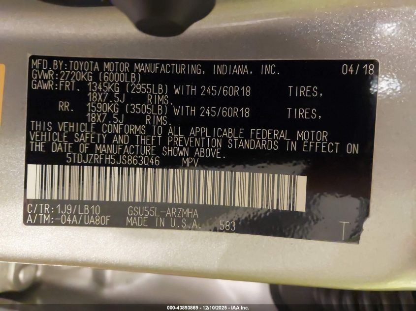 2018 TOYOTA HIGHLANDER 2018 року Бензин, 3.5, Повний привід, vin - 5TDJZRFH5JS863046 з США