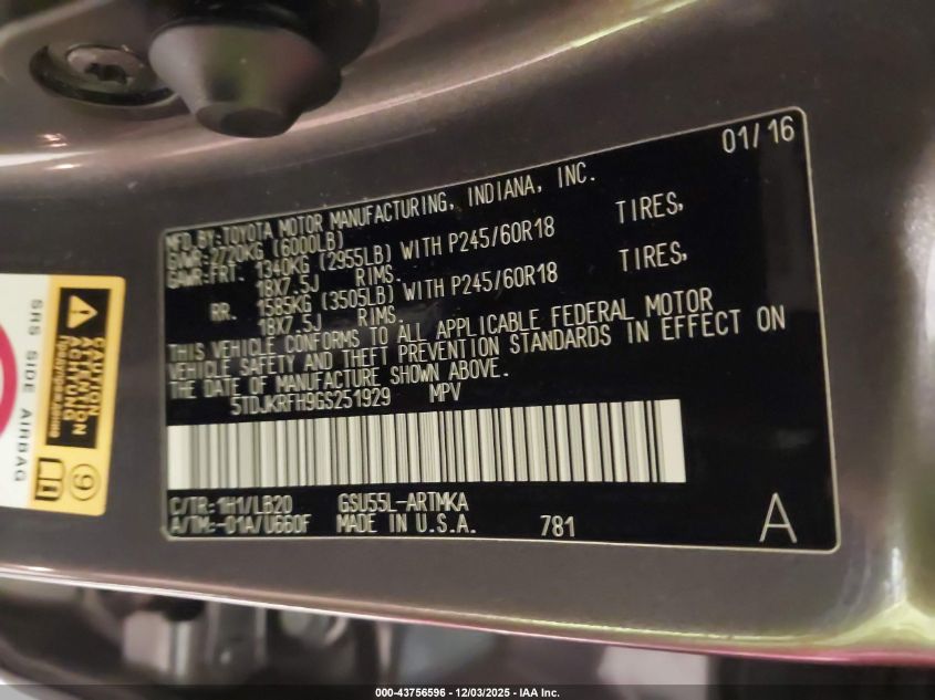 2016 TOYOTA HIGHLANDER 2016 року Бензин, 3.5, Повний привід, vin - 5TDJKRFH9GS251929 з США