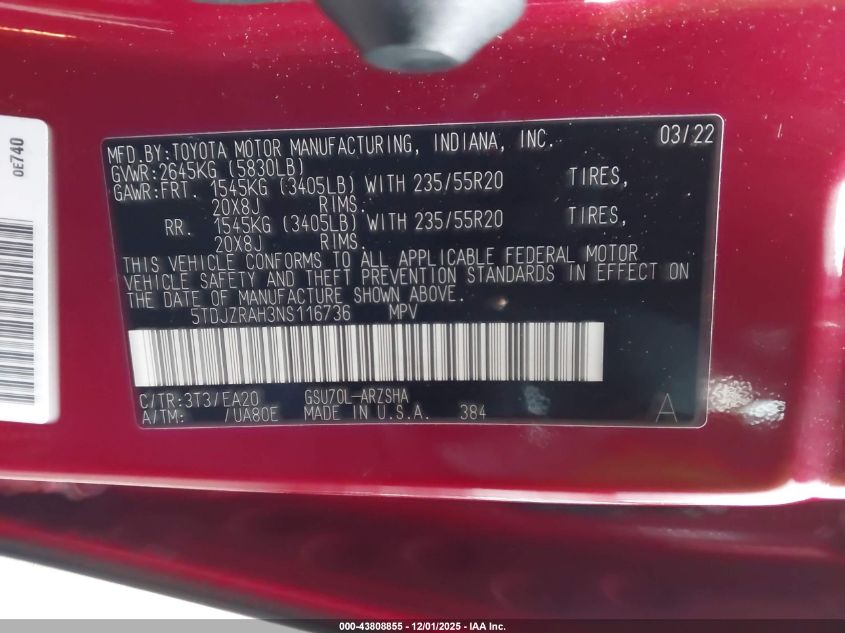 2022 TOYOTA HIGHLANDER XLE