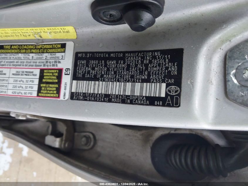 Колір СрібнийЦиліндри 4Привід Передній привідVIN 2T1KU4EE1BC737144Стан СтаціонарноУшкодження Звичайний знос