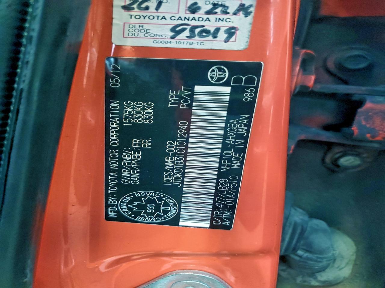 Колір АпельсиновийЦиліндри 4VIN JTDKDTB31C1012940Стан Заводиться та їде (перевірено)Ушкодження Передня або задня AutoRIA