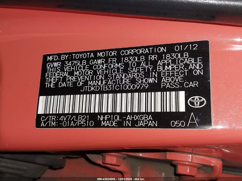 2012 TOYOTA PRIUS C 2012 року Гібрид, 1.5, Передній привід, vin - JTDKDTB31C1000979 з США