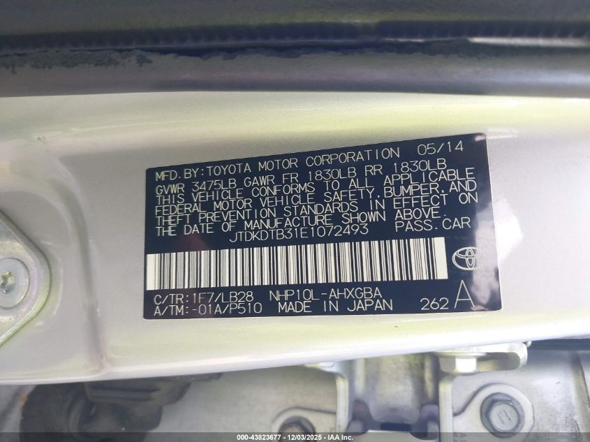 2014 TOYOTA PRIUS C 2014 року Гібрид, 1.5, Передній привід, vin - JTDKDTB31E1072493 з США