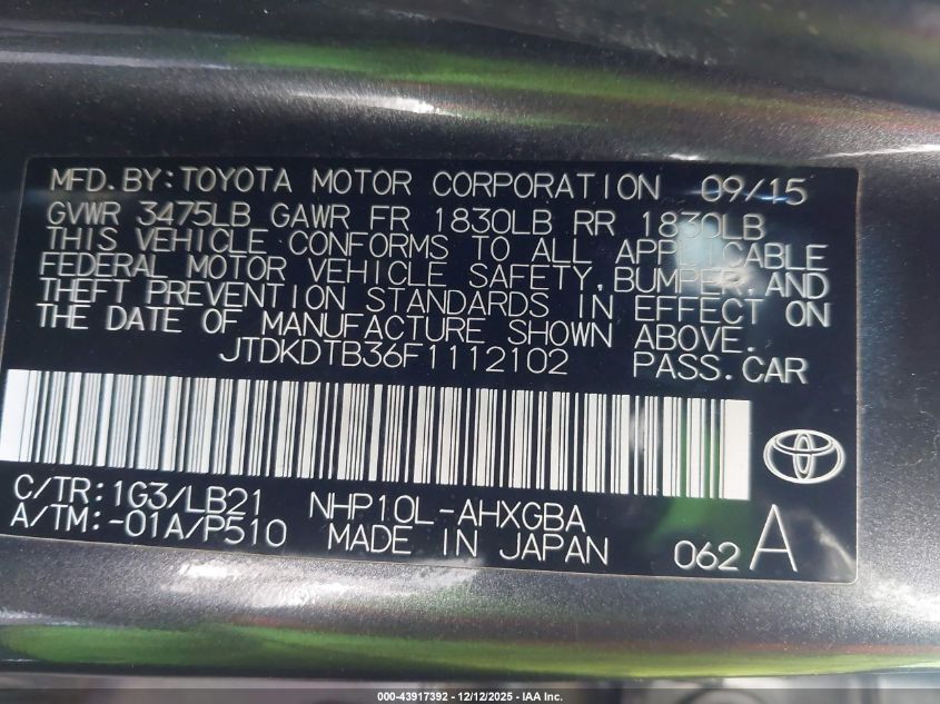 2015 TOYOTA PRIUS C
