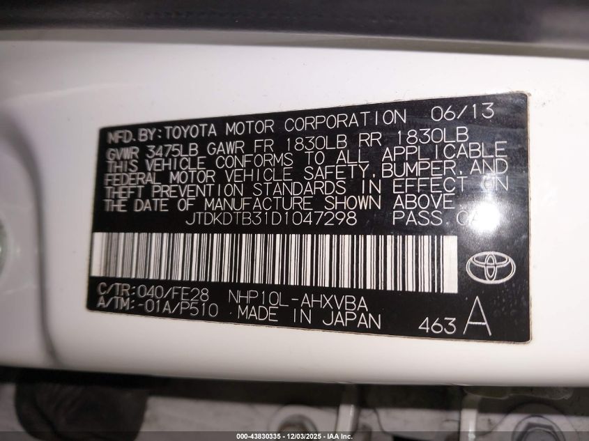 2013 TOYOTA PRIUS C 2013 року Гібрид, 1.5, Передній привід, vin - JTDKDTB31D1047298 з США