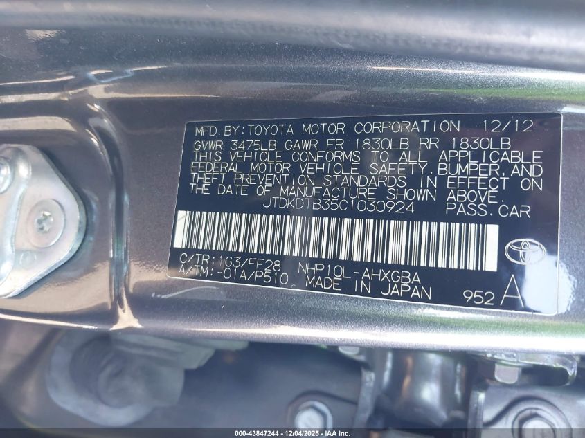 Колір СірийЦиліндри 4Привід Передній привідVIN JTDKDTB35C1030924Стан Заводиться та їде (перевірено)Ушкодження Передня або задня AutoRIA
