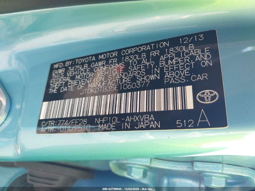 2014 TOYOTA PRIUS C 2014 року Гібрид, 1.5, Передній привід, vin - JTDKDTB35E1060377 з США