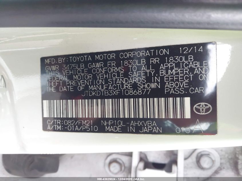 2015 TOYOTA PRIUS C 2015 року Гібрид, 1.5, Передній привід, vin - JTDKDTB3XF1086877 з США