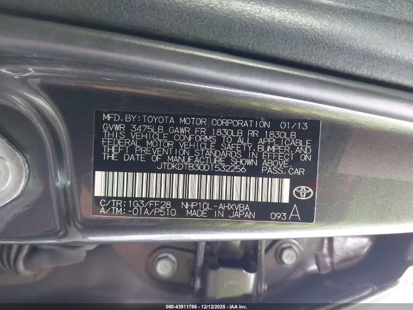 2013 TOYOTA PRIUS C 2013 року Гібрид, 1.5, Передній привід, vin - JTDKDTB30D1532256 з США