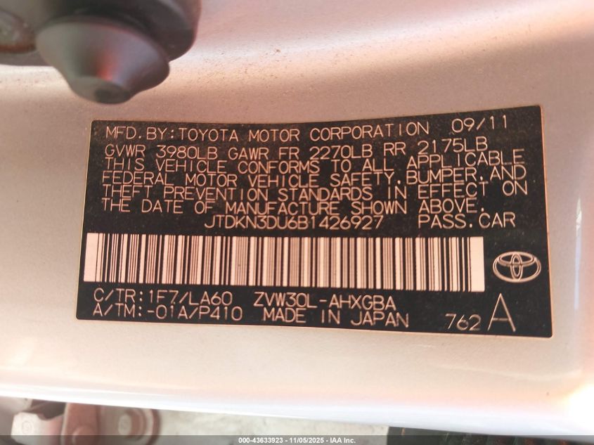 Колір СрібнийЦиліндри 4Привід Передній привідVIN JTDKN3DU6B1426927Стан СтаціонарноУшкодження Передня ліваДата аукціону 2025-12-09 AutoRIA