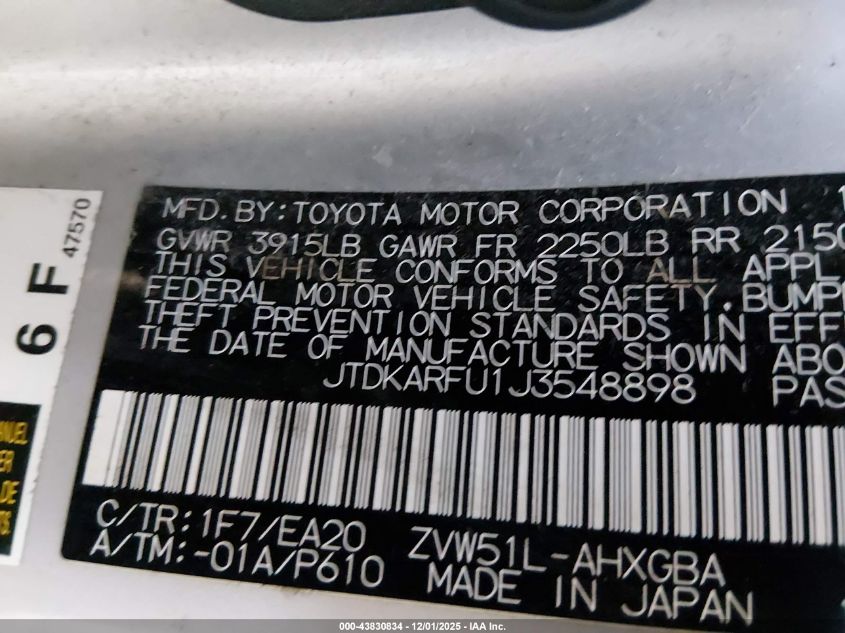 2018 TOYOTA PRIUS 2018 року Гібрид, 1.8, Передній привід, vin - JTDKARFU1J3548898 з США