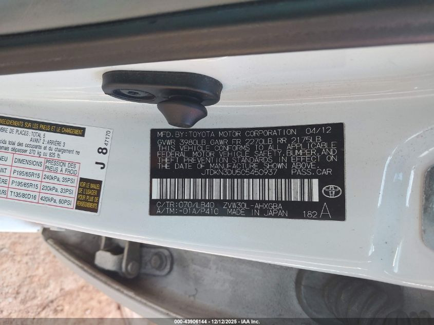 Колір БілийЦиліндри 4Привід Передній привідVIN JTDKN3DU5C5450937Стан Заводиться та їде (перевірено)Ушкодження Передня або задня AutoRIA