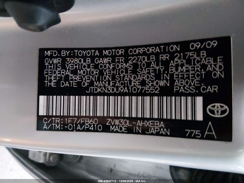 Колір СрібнийЦиліндри 4Привід Передній привідVIN JTDKN3DU9A1077552Стан Заводиться та їде (перевірено)Ушкодження Передня або задняДата аукціону 2025-12-16 AutoRIA