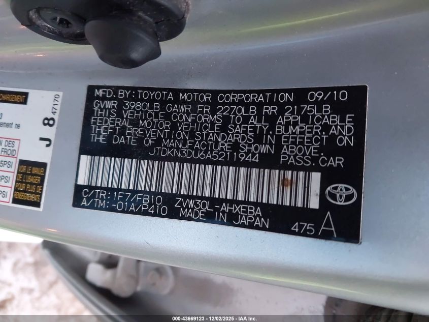 2010 TOYOTA PRIUS 2010 року Гібрид, 1.8, Передній привід, vin - JTDKN3DU6A5211944 з США