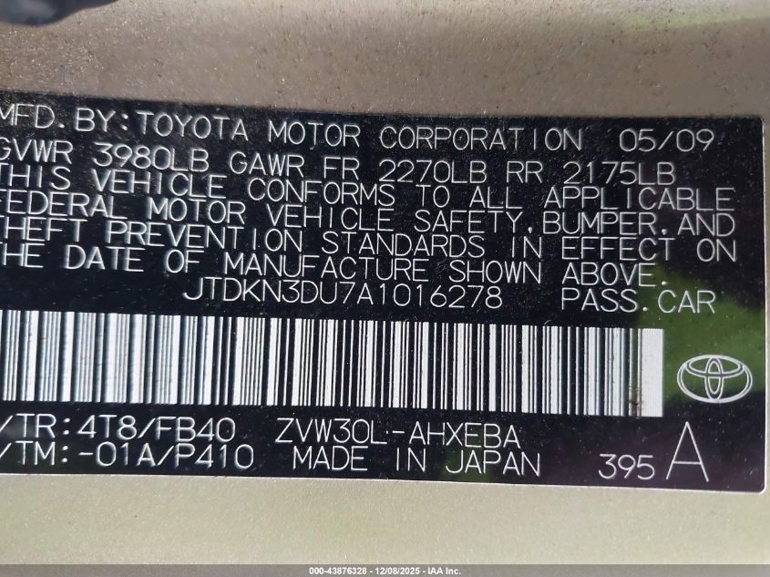 Колір ЗолотийЦиліндри 4Привід Передній привідVIN JTDKN3DU7A1016278Стан Заводиться та їде (перевірено)Ушкодження Звичайний зносДата аукціону 2025-12-18 AutoRIA