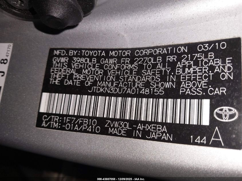 Колір СрібнийЦиліндри 4Привід Передній привідVIN JTDKN3DU7A0148155Стан Заводиться та їде (перевірено)Ушкодження Передня або задняДата аукціону 2025-12-15 AutoRIA