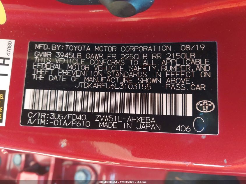 2020 TOYOTA PRIUS L