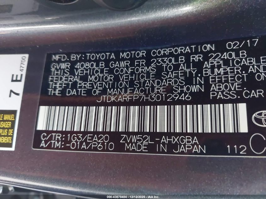 2017 TOYOTA PRIUS PRIME PRIUS PRIM