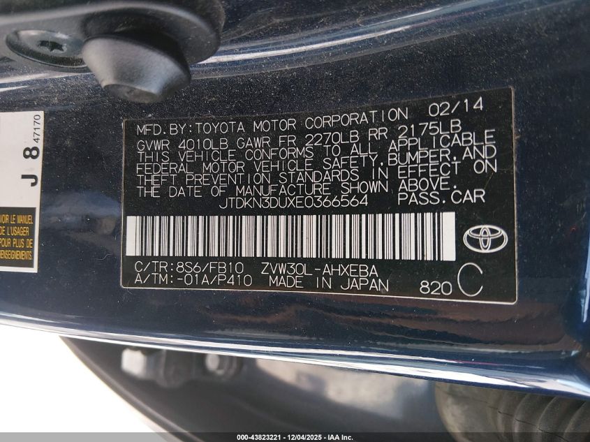 2014 TOYOTA PRIUS 2014 року Гібрид, 1.8, Передній привід, vin - JTDKN3DUXE0366564 з США
