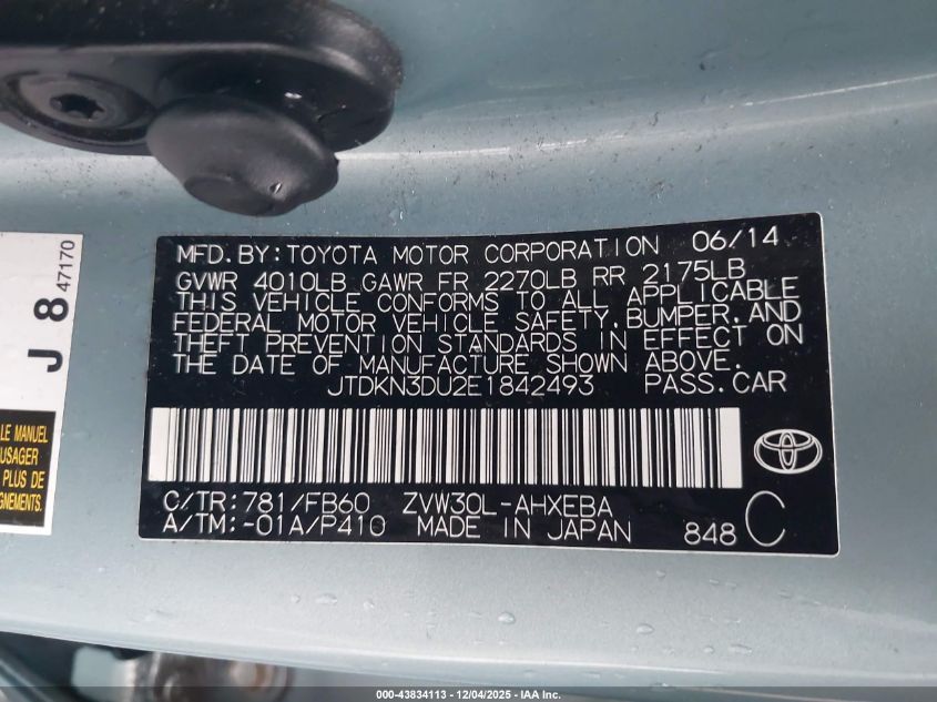 2014 TOYOTA PRIUS 2014 року Гібрид, 1.8, Передній привід, vin - JTDKN3DU2E1842493 з США