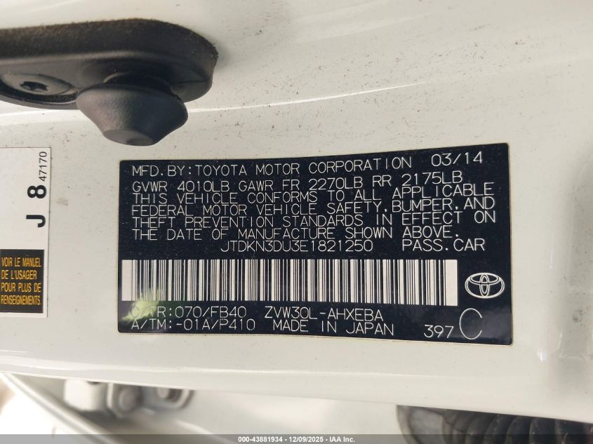 2014 TOYOTA PRIUS 2014 року Гібрид, 1.8, Передній привід, vin - JTDKN3DU3E1821250 з США