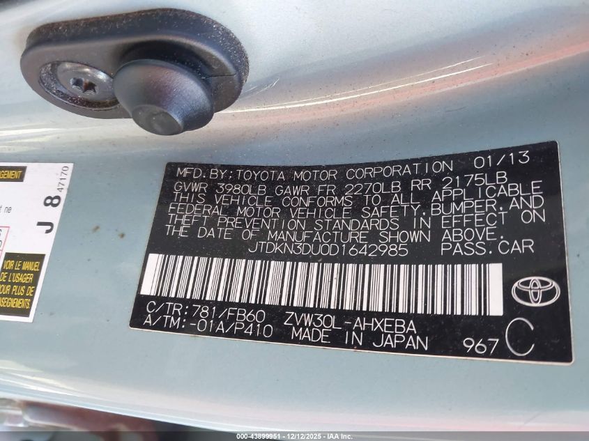 2013 TOYOTA PRIUS 2013 року Гібрид, 1.8, Передній привід, vin - JTDKN3DU0D1642985 з США