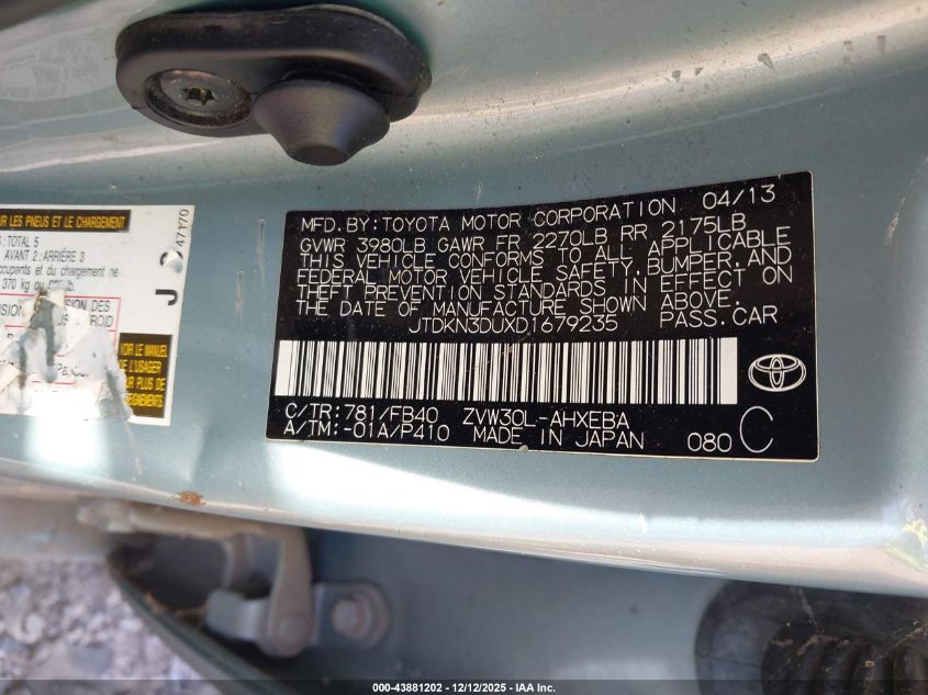 Колір СинійЦиліндри 4Привід Передній привідVIN JTDKN3DUXD1679235Стан СтаціонарноУшкодження Електрика AutoRIA