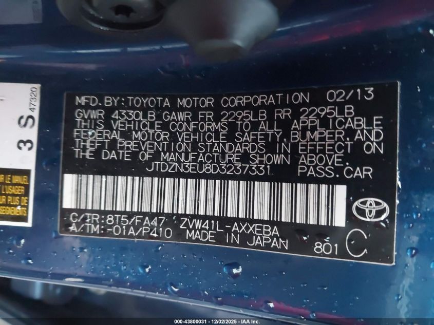 Колір СинійЦиліндри 4Привід Передній привідVIN JTDZN3EU8D3237331Стан СтаціонарноУшкодження Передня ліва AutoRIA