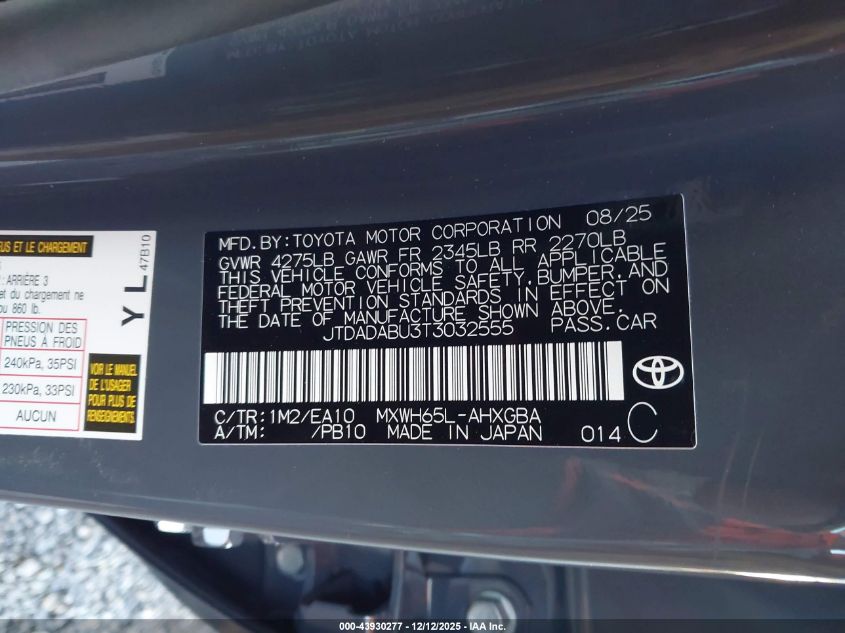 Колір СірийЦиліндри 4Привід Повний привідVIN JTDADABU3T3032555Стан Заводиться та їде (перевірено)Ушкодження Передня або задня