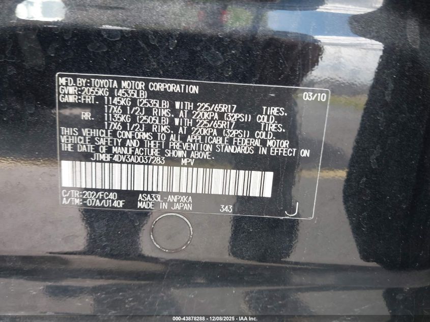 2010 TOYOTA RAV4 2010 року Бензин, 2.5, Повний привід, vin - JTMBF4DV3AD037283 з США