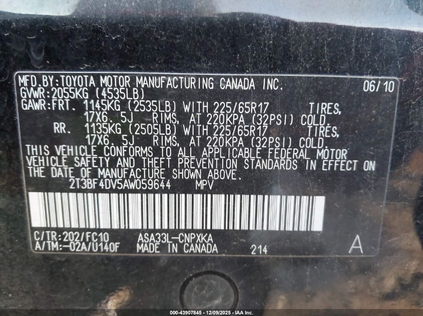 2010 TOYOTA RAV4 2010 року Бензин, 2.5, Повний привід, vin - 2T3BF4DV5AW059644 з США