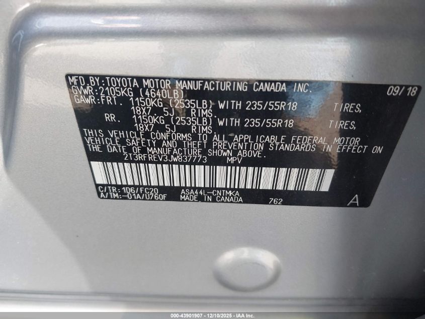 2018 TOYOTA RAV4 2018 року Бензин, 2.5, Повний привід, vin - 2T3RFREV3JW837773 з США