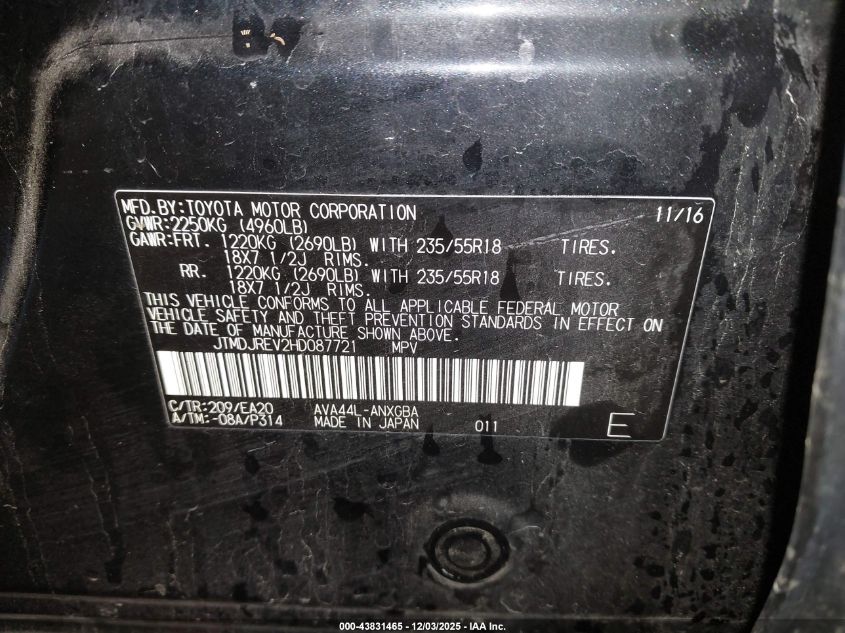 Колір ЧорнийЦиліндри 4Привід Повний привідVIN JTMDJREV2HD087721Стан Заводиться та їде (перевірено)Ушкодження Передня або задня AutoRIA