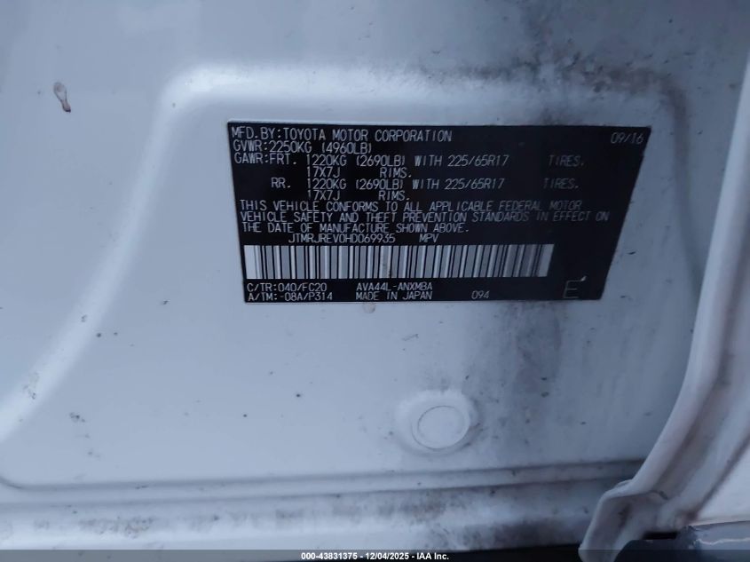 Колір БілийЦиліндри 4Привід Повний привідVIN JTMRJREV0HD069935Стан Заводиться та їде (перевірено)Ушкодження Передня і задня AutoRIA