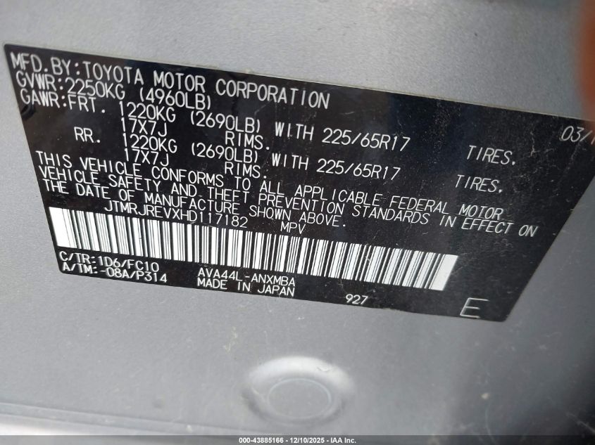 Колір СрібнийЦиліндри 4Привід Повний привідVIN JTMRJREVXHD117182Стан СтаціонарноУшкодження Права сторона AutoRIA