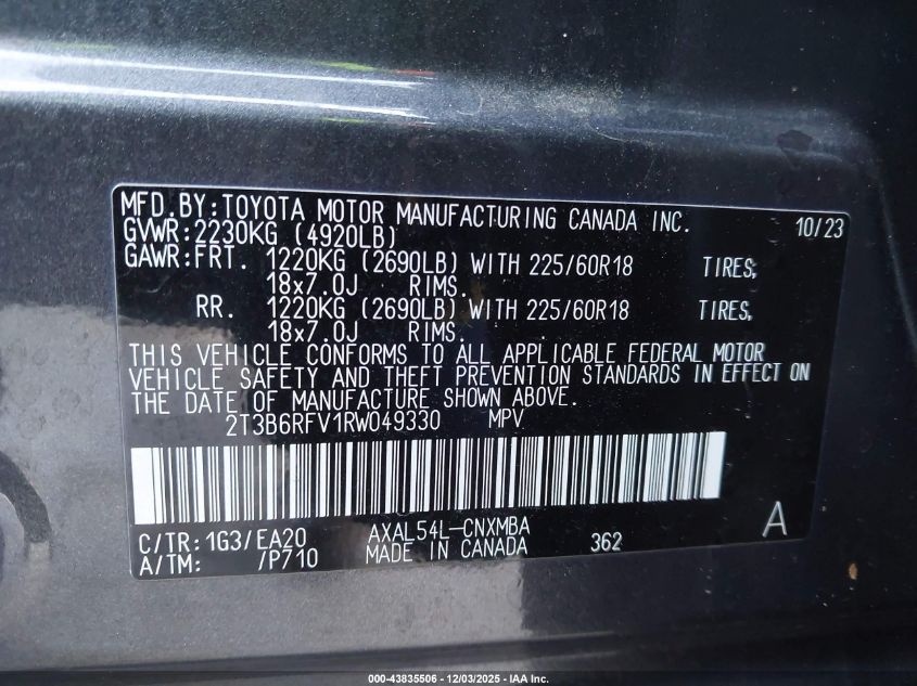 2024 TOYOTA RAV4 HYBRID 2024 року Гібрид, 2.5, Повний привід, vin - 2T3B6RFV1RW049330 з США