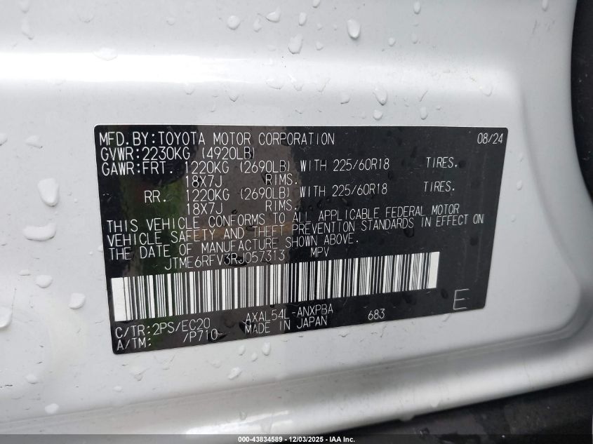 2024 TOYOTA RAV4 HYBRID 2024 року Гібрид, 2.5, Повний привід, vin - JTME6RFV3RJ057313 з США