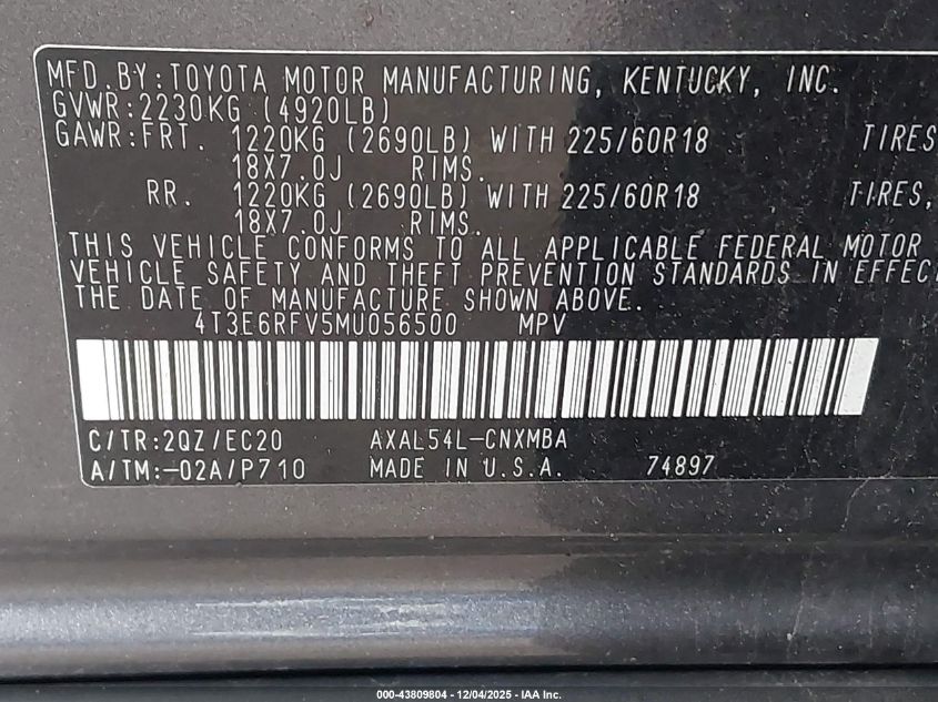 Колір СірийЦиліндри 4Привід Повний привідVIN 4T3E6RFV5MU056500Стан СтаціонарноУшкодження Передня або задня AutoRIA