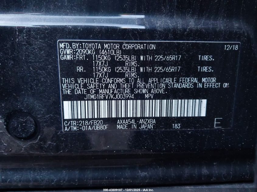 2019 TOYOTA RAV4 2019 року Бензин, 2.5, Повний привід, vin - JTMG1RFV7KJ003994 з США