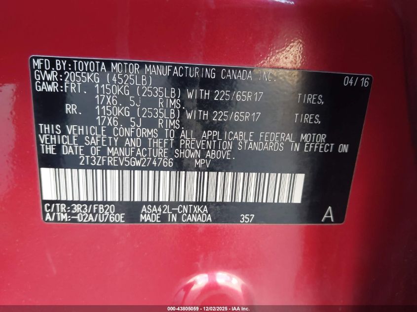 2016 TOYOTA RAV4 2016 року Бензин, 2.5, Передній привід, vin - 2T3ZFREV5GW274766 з США
